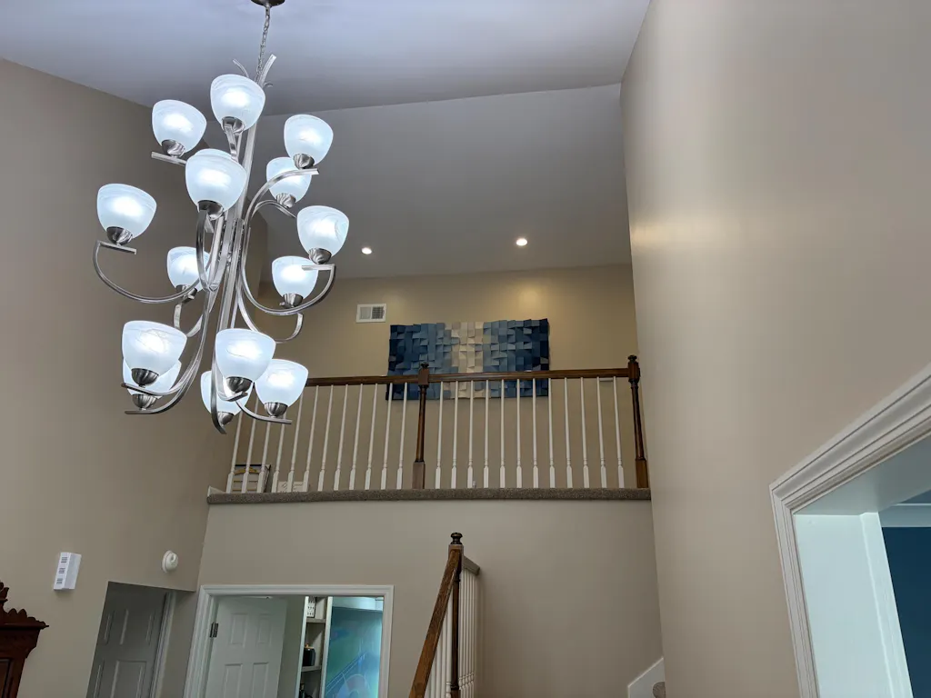 This is a big piece and came in two sections. We weren't aware of this so hanging was a little challenging. But it did come with all the necessary hanging materials, including a drillbit.