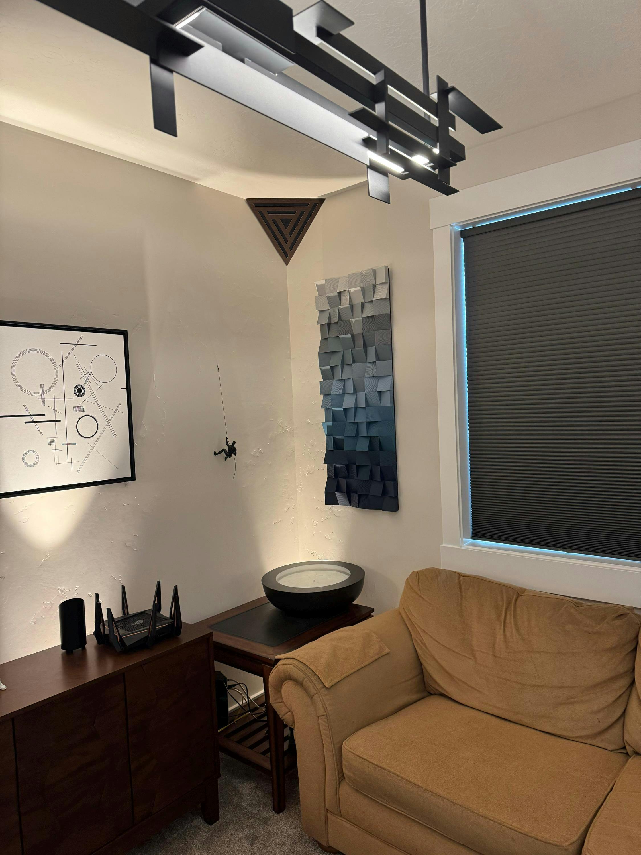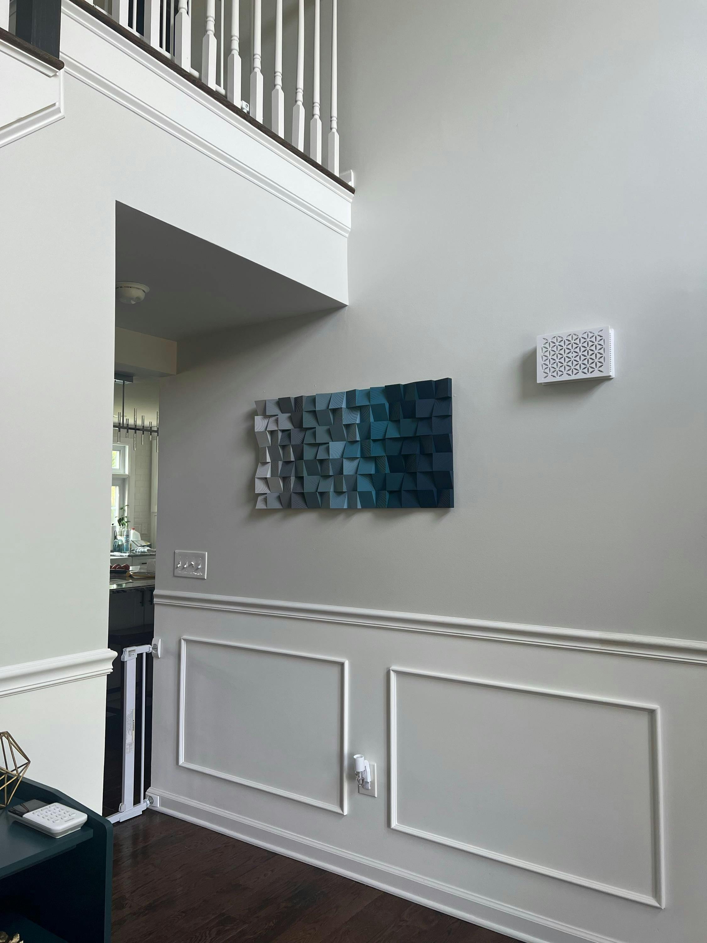 A handcrafted piece of geometric wood art designed to elevate your home or office.